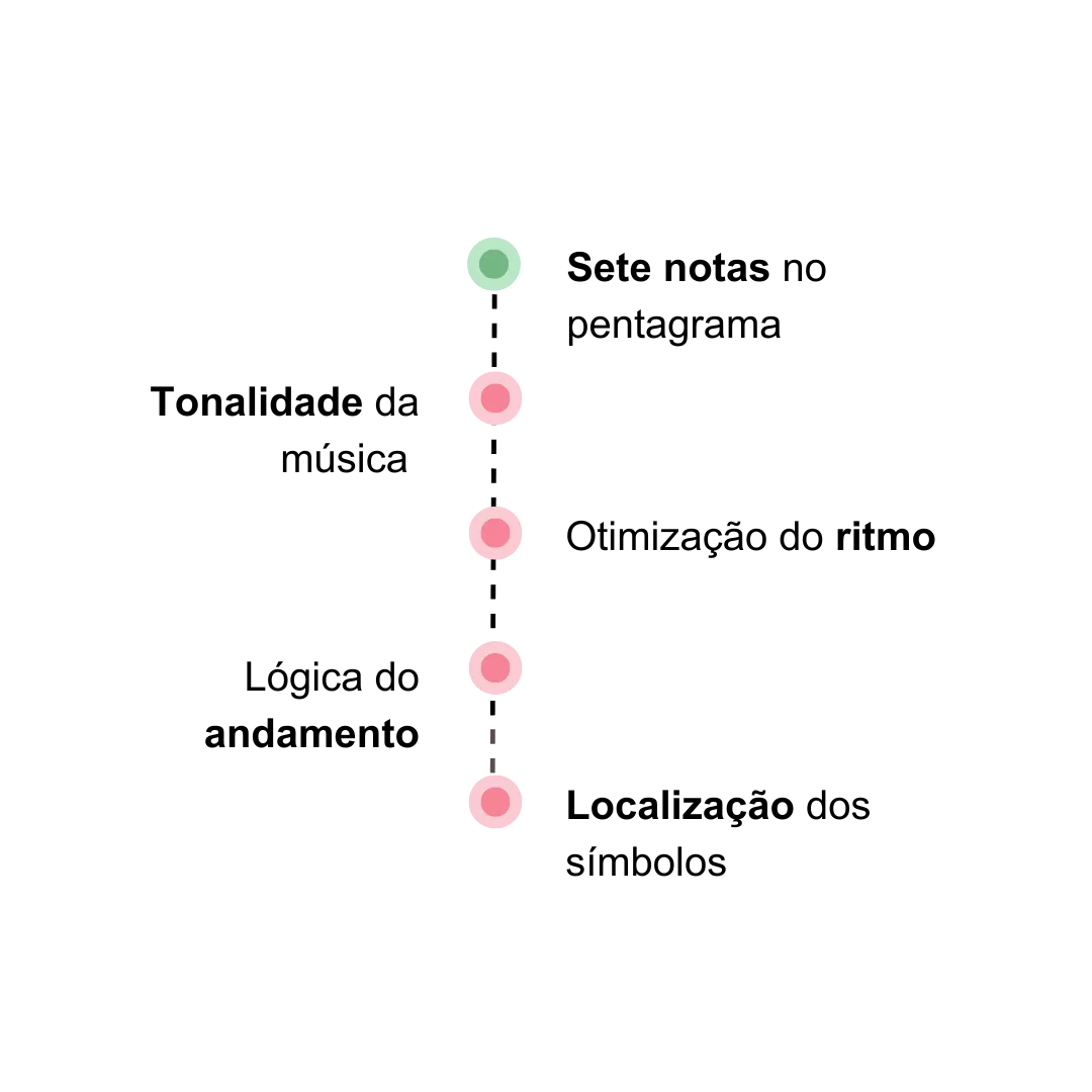 O que torna o Accelerando a Partitura diferente é a forma como ele organiza os conceitos que são necessários ler partitura.